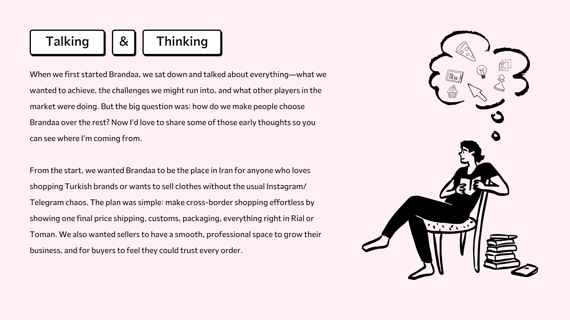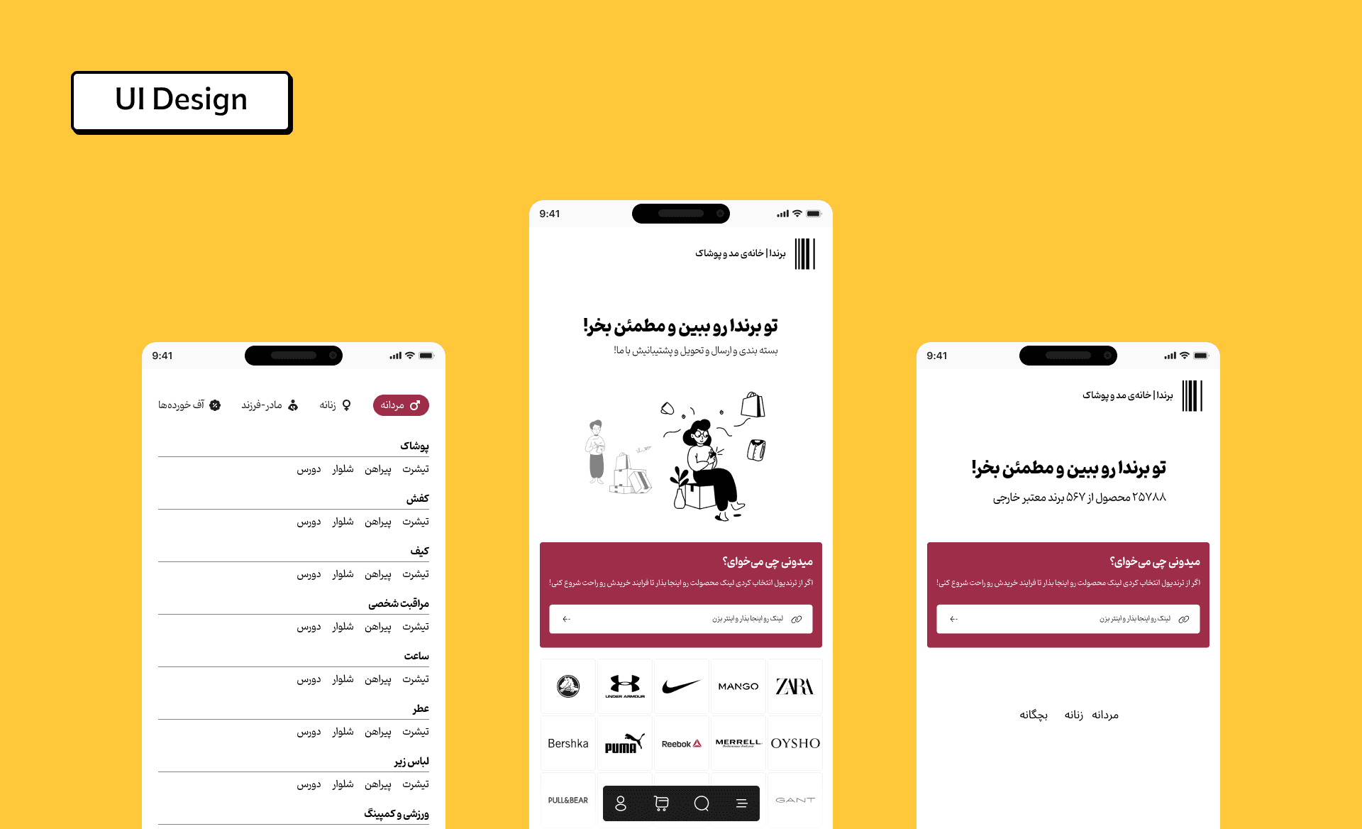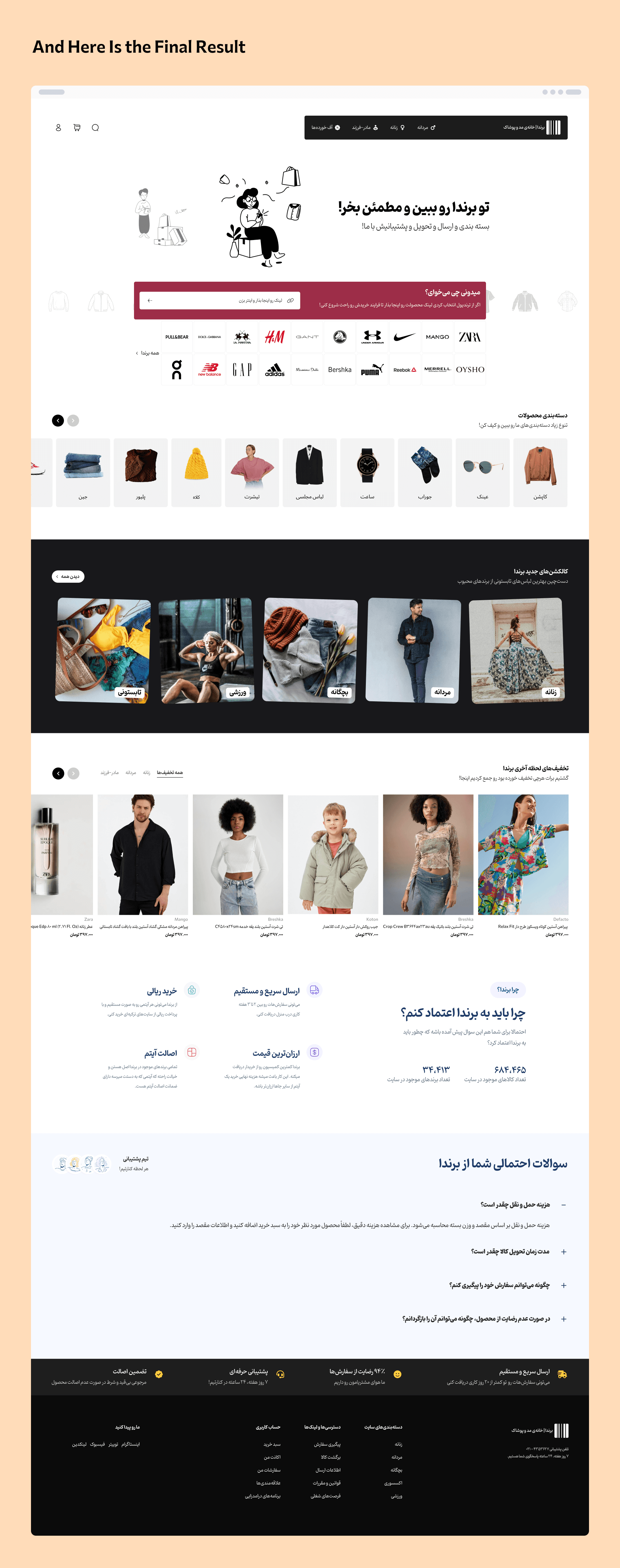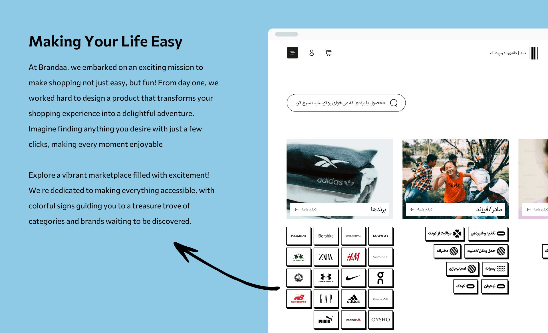 with a collection of over 79,000 products from 34,000 brands, Brandaa aims to be Iran's largest fashion store. A key feature of Brenda is the ability to instantly purchase from renowned fashion sites worldwide. At the time of this showcase, Brenda is in its soft launch phase.